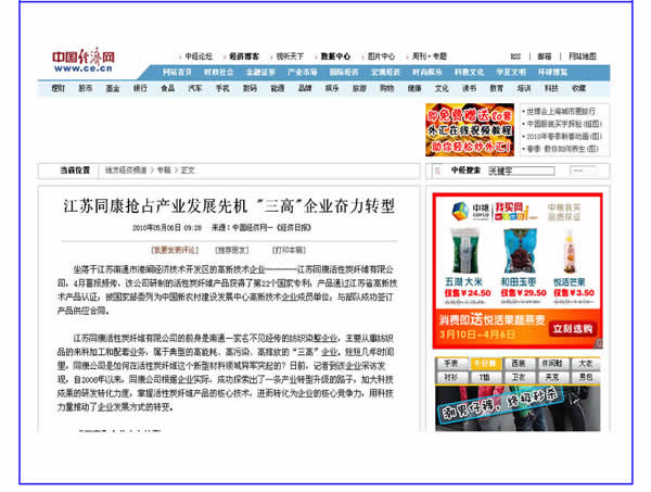 中國(guó)經(jīng)濟(jì)網(wǎng)——江蘇同康搶占產(chǎn)業(yè)發(fā)展先機(jī)“三高”企業(yè)奮力轉(zhuǎn)型 |